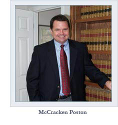 McCracken Poston was born and raised in Catoosa County, Georgia, attending local schools and working for the District Attorney's Office in the four Northwest Georgia counties of the Lookout Mountain Circuit while obtaining his undergraduate degree from U.T. Chattanooga. Afterward, while attending the School of Law at the University of Georgia, Poston served as President of his graduating third-year class. After passing the Georgia Bar Examination during his third year of law school, Poston spent his first three years as a lawyer working with the Wiggins Law Offices and then as an Assistant District Attorney in the administration of Lookout Mountain Circuit District Attorney David L. "Red" Lomenick. In 1988, Poston qualified to run for the state House of Representatives, and went on to win the primary and general election. After a brief stint with the Offices of Clifton "Skip" Patty, Poston in March of 1989 began the solo law practice that he maintains to date. During his four terms in the Georgia House of Representatives, Poston championed many causes important to Northwest Georgians, as well as a number of issues of statewide interest. No other legislation is more associated with the former Representative Poston than the "Ethics in Government Act of 1992", which for the first time in Georgia required the registration of lobbyists and the reporting of their expenditures in the effort to influence legislators or legislation. Poston also passed legislation which was signed into law that speeded up the adoption process in state deprivation cases. He also authored laws to clear up legal issues in the criminal conspiracy law and to allow victims of child abuse to legally participate in the investigation and arrest of their suspected perpetrator. Poston also wrote the law to require the posting of pesticide application schedules in state buildings for the benefit of those sensitive to the chemicals used. In 1996, Poston left the state legislature and ran for the United States Congress. He was the Democratic Nominee in North Georgia's 9th District, but was defeated the general election by the newly party-switched incumbent, Rep. Nathan Deal. Poston's solo law practice was dormant during the year he devoted to the congressional race, but an office-sharing arrangement with local attorneys R. Kevin Silvey and J. Michael Giglio made Poston's transition from public servant to a full-time law practice after the race much easier. The three attorneys, all solo practitioners, share an office building, telephone system, receptionist and a high-school student runner, but otherwise they maintain separate and distinct law offices. With his exit from elective office, Poston did not end his public service to his community and state. Since 1997, Poston has served as a Juvenile Court Judge for the Lookout Mountain Circuit, primarily in Catoosa County. In this position, Judge Poston is restricted from practicing law in any Juvenile Court in the state of Georgia. Otherwise, Poston is qualified to practice at all other levels of trial and appellate courts in Georgia and Tennessee. He may be admitted in other jurisdictions through pro hac vice admission. In January, 2005, Poston relocated his law offices to The Lawyers Building at 7713 Nashville Street, Suite C, Ringgold. For the convenience of his Tennessee clients he maintains a Tennessee office (by appointment only) at 707 Georgia Avenue, in downtown Chattanooga. McCracken Poston resides in Catoosa County and and is active in civic and charitable causes in Northwest Georgia and the Greater Chattanooga area. He has three children, Alina, Mac and Cal. |